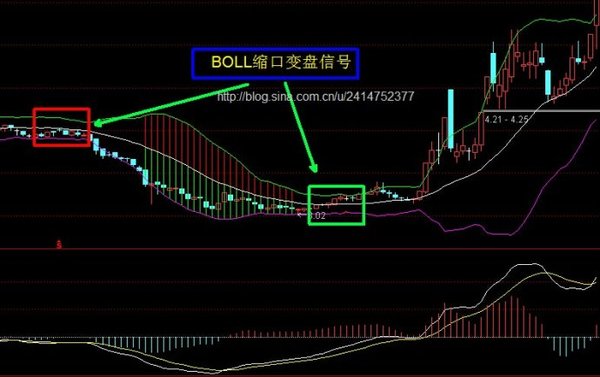收縮收斂--準備變盤,向上突破或向下突破;軌道發散--表示向上擴大或向下擴大;極度發散--向上時股價遠離上軌時為賣出信號,向下時股價跌穿下軌時為買入信號。