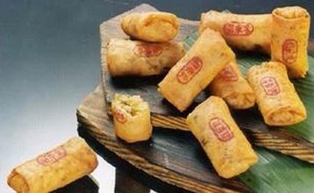 春餅也是潮州小食之佳品。其外觀呈長方形,金黃悅目,外酥內嫩;味濃香溢,美味爽口。春餅古稱“春卷”,我們的祖先為祈豐收康樂吉祥幸福,便在立春日制作此食品祭天。